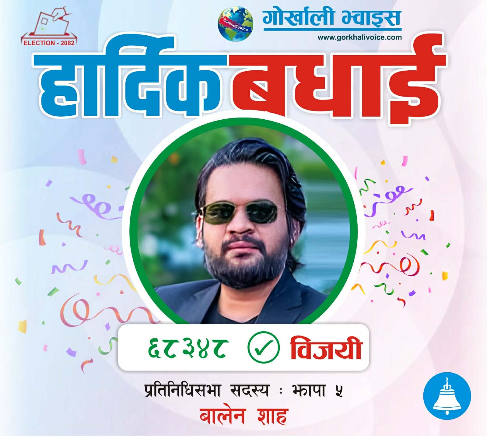 काठमाडौं । प्रतिनिधि सभा निर्वाचनअन्तर्गत देशकै चर्चित निर्वाचन क्षेत्र झापा–५ मा राष्ट्रिय स्वतन्त्र पार्टी (रास्वपा)का वरिष्ठ नेता बालेन शाह फराकिलो मतान्तरसहित विजयी भएका छन्।