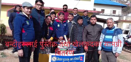 पाल्पा , २७ माघ । पुस्तक दिबसको अबसरमा नेपाल पुस्तक तथा स्टेसनरी ब्यबसायी महासंघ पाल्पाले जिल्ला कारागार तानसेन पाल्पाका बन्दीहरुलाई पुस्तक...