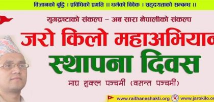 भविन्द्र गौतम, २७ माघ । वैज्ञानिक सत्ययुगको लक्ष्य लिएर स्थापना भएको जरो र किलो नेपालमै भएको मौलिक रैथाने शक्तिले आफ्नो स्थापना दिवस आज...