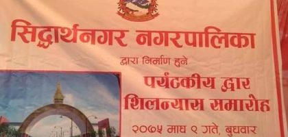 नारायणप्रसाद कोइराला ,रुपन्देही, माघ ९ । पैदलमार्ग गरि नेपाल भित्रने सबैभन्दा ठूलो नाका रुपन्देहीको भैरहवामा सिद्धार्थनगर नगरपालिकाले बनाउन लागेको प्रवेशद्वारको प्रतिनिधि सभा सदस्य...